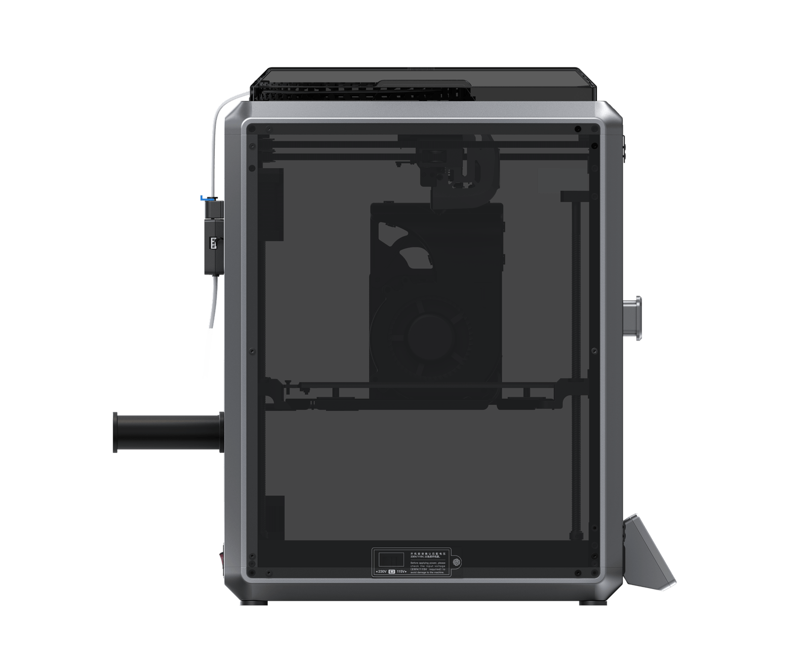 Een grote ventilator op de printkop met luchtkanalen koelt het model direct. Een hulpventilator van 18 W in de bouwkamer versterkt ook het koelingseffect.